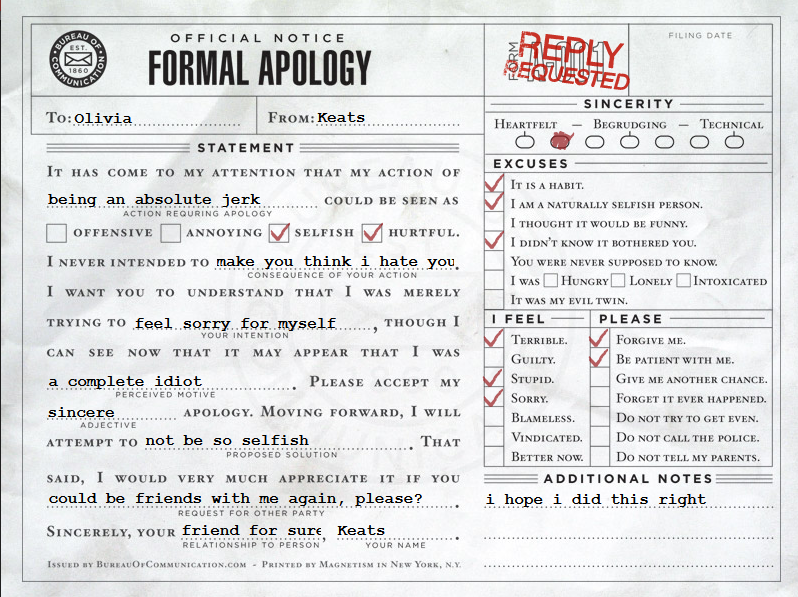 STEP 3: choose and fill out an appropriate form from your character to someone else's.